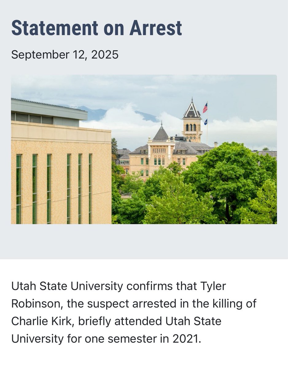 The right is now pivoting to indoctrination at the collegiate level as the cause of this. Tyler appears to have attended Utah State University for only one semester.