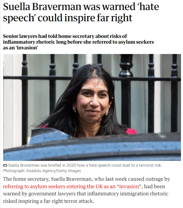 Extreme metaphors such as "invasion" - especially when used by politicians - may attract critical media attention, as Suella Braverman's repeated use of the provocative & divisive term has done recently.