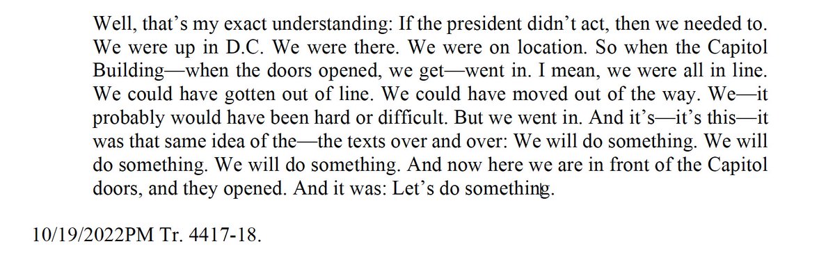 … OK Young’s testimony was very similar: “We talked about doing something. . . . And then when the crowd got over the barricade and they went into the building, an opportunity presented itself to do something. …”