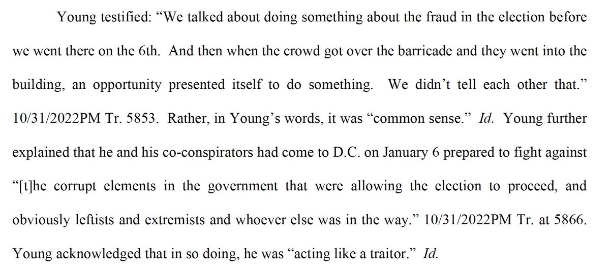 … Instead, the govt proved that, once other rioters (like the Proud Boys) breached the Capitol, the Oath Keepers opportunistically entered the building, allegedly with that long-held seditious goal in mind. …