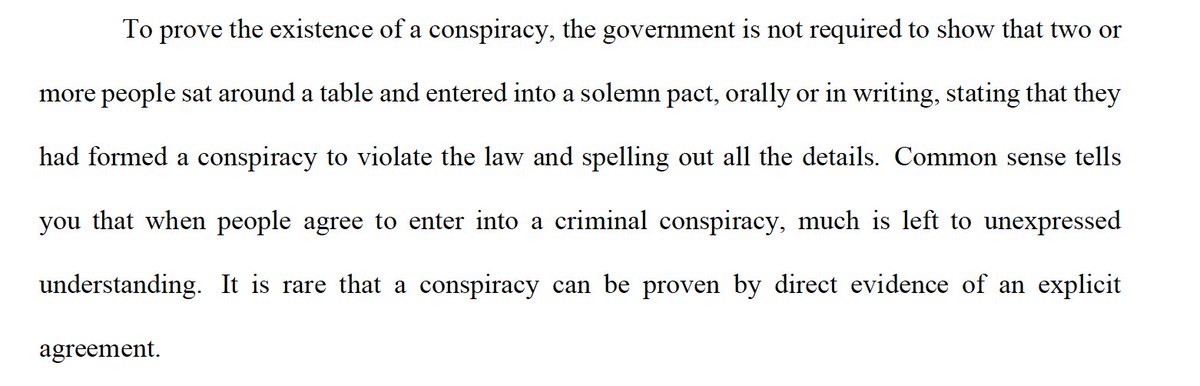 … “We didn’t [have to] tell each other [to go in. It was] common sense.” Does that prove a conspiracy? Under the govt’s proposed definition of conspiracy (below) it does. Conspiratorial greements can unquestionably be implicit. …