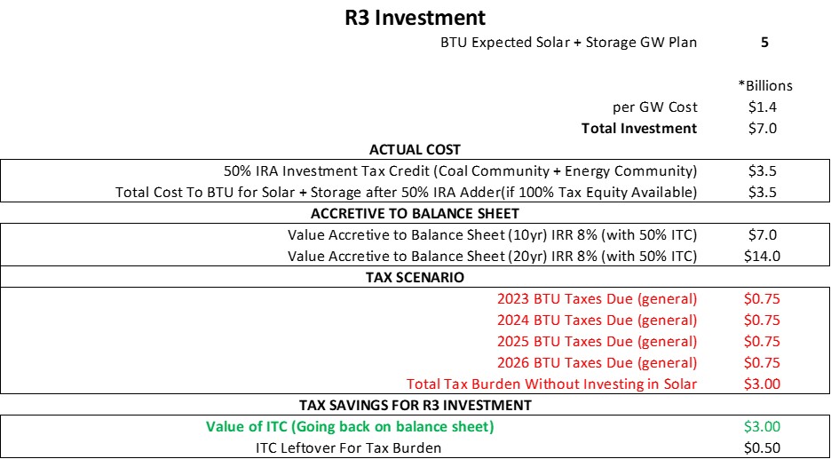 $BTU R3 investment re; tax credits and IRA.