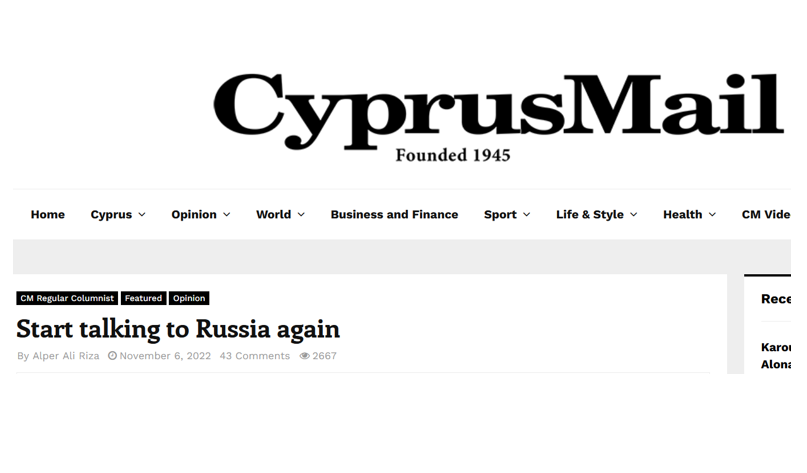 Адвокат Альпер Али Реза написал колонку в кипрской газете.