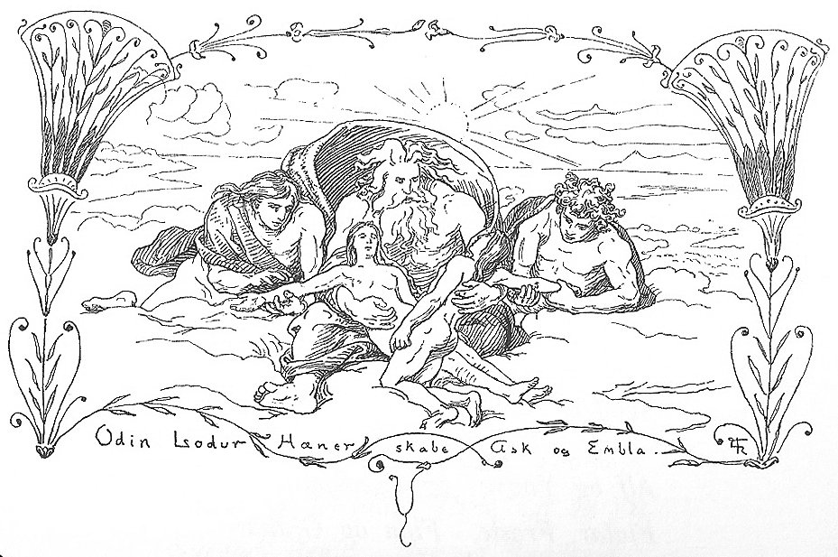 hombres y todas las cosas creadas por éste. No olvidemos que fue Odín con sus hermanos quien diseñó Midgard (nuestra tierra) con los restos de Ymir y creó a la primera pareja de humanos, Ask y Embla, usando como base dos troncos de árbol.