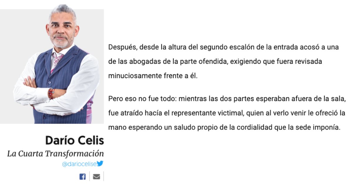 Después, desde la altura del segundo escalón de la entrada acosó a una de las abogadas de la parte ofendida, exigiendo que fuera revisada minuciosamente frente a él. bit.ly/3fBxGFf