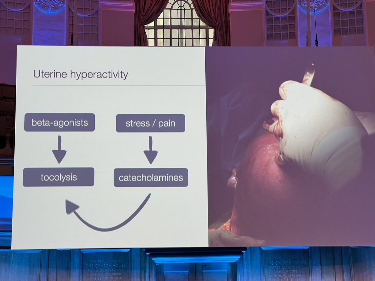 There is an argument for CSE causing uterine hyperactivity - by removing pain, circulating catechamines would drop, removing their tocolytic effect. #OAA3dc2022