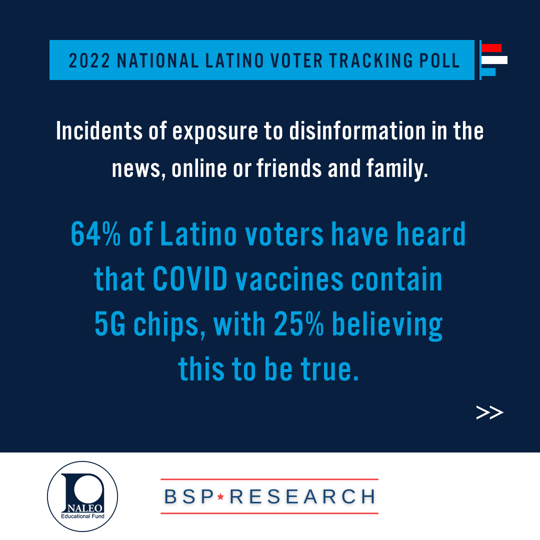 ๐ฐDisinformation continues to target the Latino community. Around 64% have heard that COVID vaccines contain 5G chips that allow the government to monitor & control the population, with 25% believing this to be true.