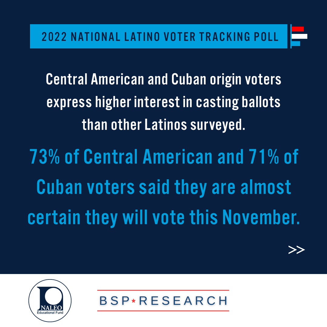 ๐ณ Cuban and Central American origin voters express higher interest in casting ballots than other Latinos surveyed, with 71% of Cuban origin and 73% of Central American origin voters saying they are almost certain they will vote.