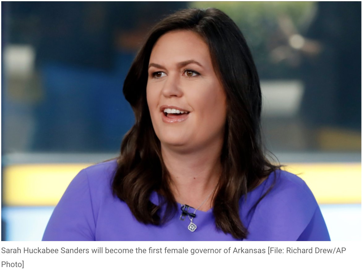 @shihab_rattansi Sarah Huckabee Sanders, who served as press secretary in Trump’s White House, has been elected as the first woman governor of Arkansas.