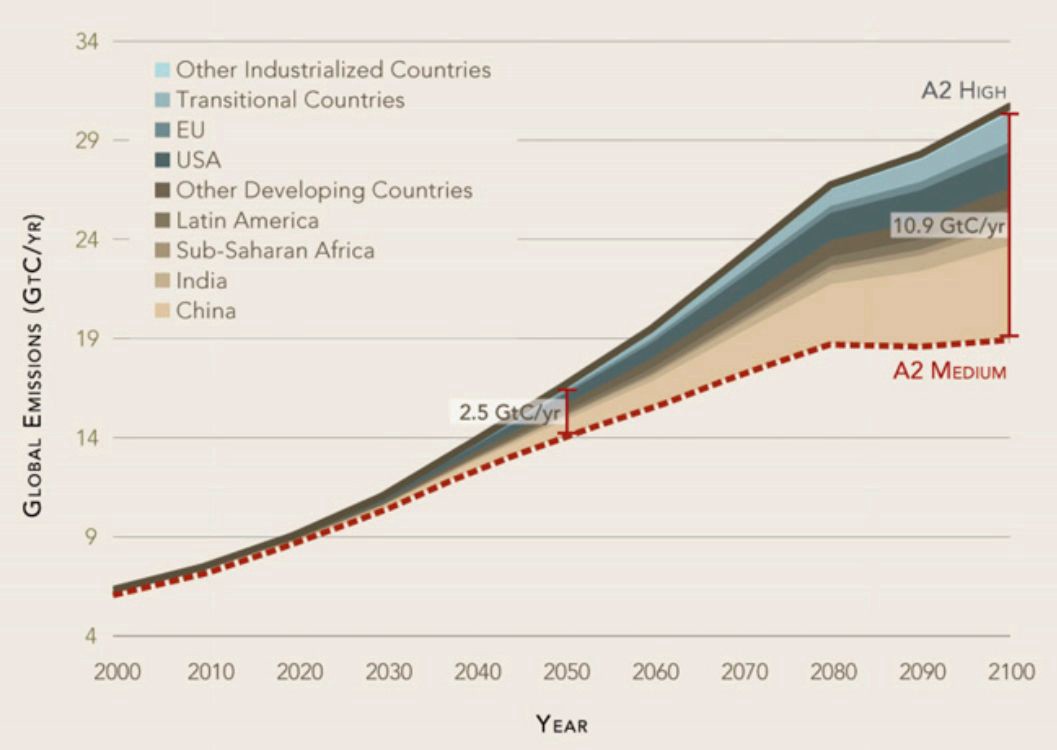 - prévoir les émissions, en particulier la baisse des émissions à laquelle les pays riches se sont engagés, mais qu'ils ne font pas vraiment, et la hausse des émissions dans les pays pauvres