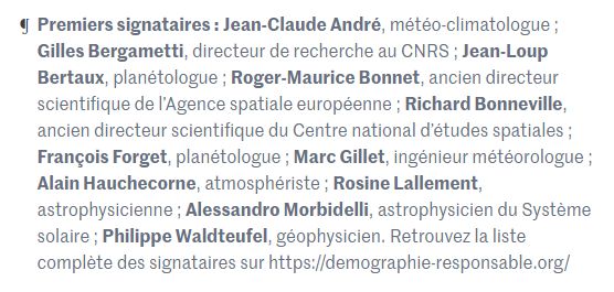 On trouve aussi le même écueil avec l'appel que pour les signataires de cette tribune : où sont les sciences humaines et sociales ? Il n'y a que 2 démographes parmi les 15 000, c'est embêtant quand c'est le sujet de 2 mesures sur 13 ...