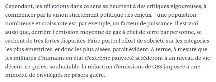 C'est bien de reconnaître les inégalités et le poids écologique des plus aisés, mais cette crainte du rattrapage des plus pauvres est très théorique ...