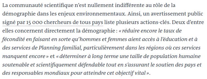 Ah, le fameux appel des 15 000 scientifiques. Ici aussi c'est un peu long pour ce thread, mais cette partie de l'appel est très mal sourcée et relève plus de l'opinion.