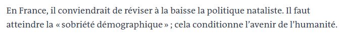 Après, les "politiques natalistes" s'appellent congé maternité, allocations familiales, éducation publique, sécurité sociale ... est-on vraiment sûr de vouloir les "réviser" pour une réduction de natalité aux effets écologiques particulièrement douteux ?