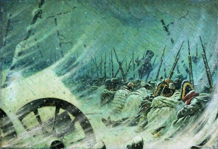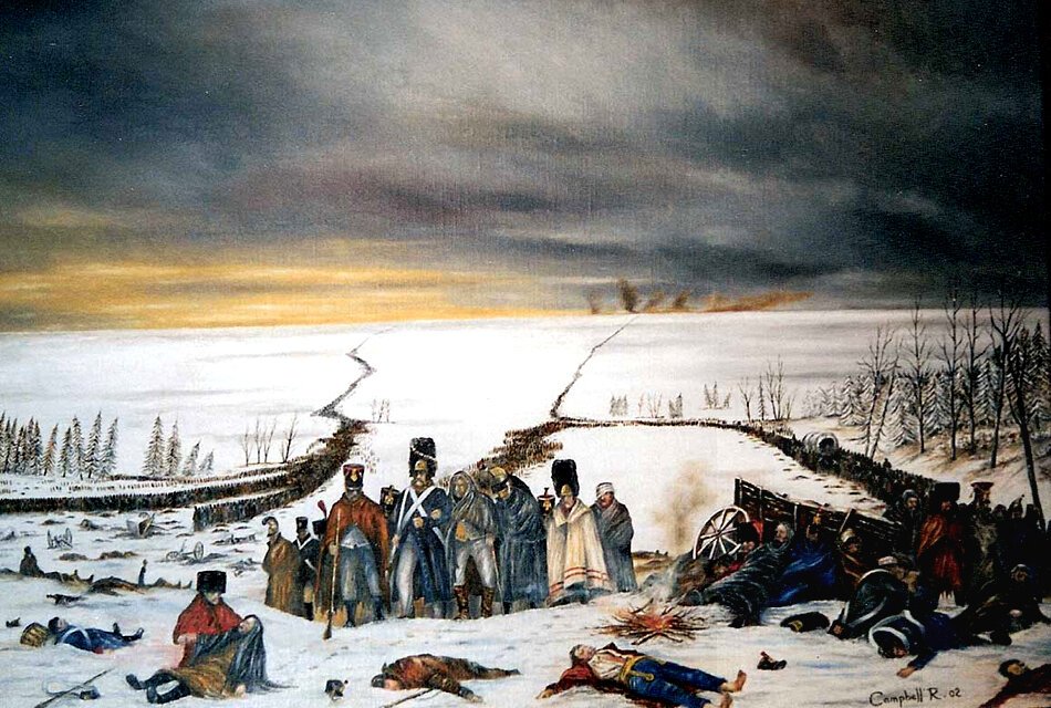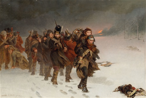 But now, the snowflakes turned into a blizzard, leaving "immense and dreary uniformity" of whiteness before the dying men. (Segur)