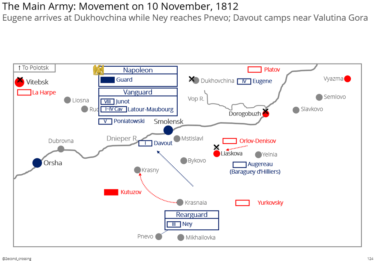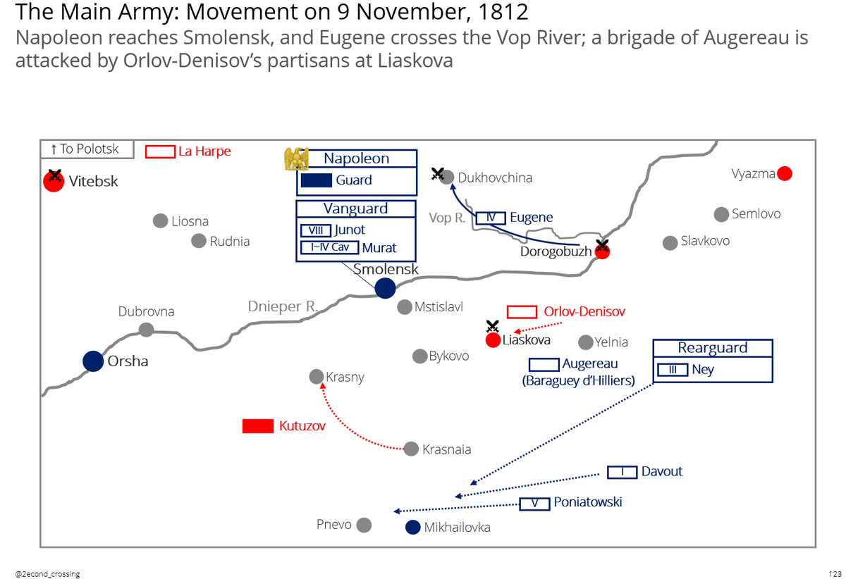 Eugene was ordered back to Smolensk, while Ney was hotly pursued by Miloradovich. Victor and Oudinot, at last, set on remobilizing. #Voicesfrom1812