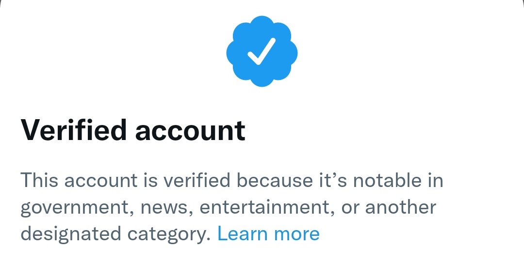 This is what I see when I click on my “verified” badge. If you click the badge of someone who purchased verification without confirming identity or being selected for verification, a different message appears. Twitter could use this to distinguish official/public-figure accounts.