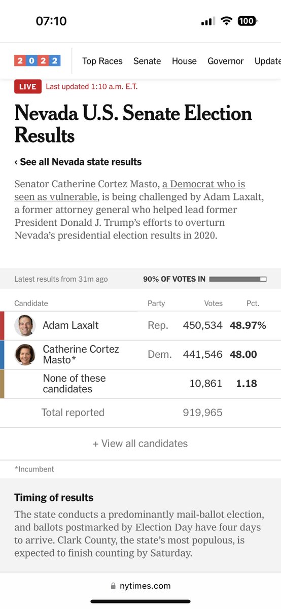 Se volete la mia già solo su questo batch di schede Cortez Masto recupera 8mila dei 9 mila voti di scarto. Finirà chiaramente avanti a fine spoglio.