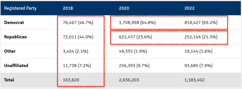 - 2018: 164K mail-in ballots