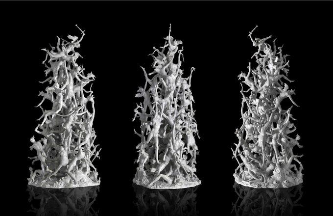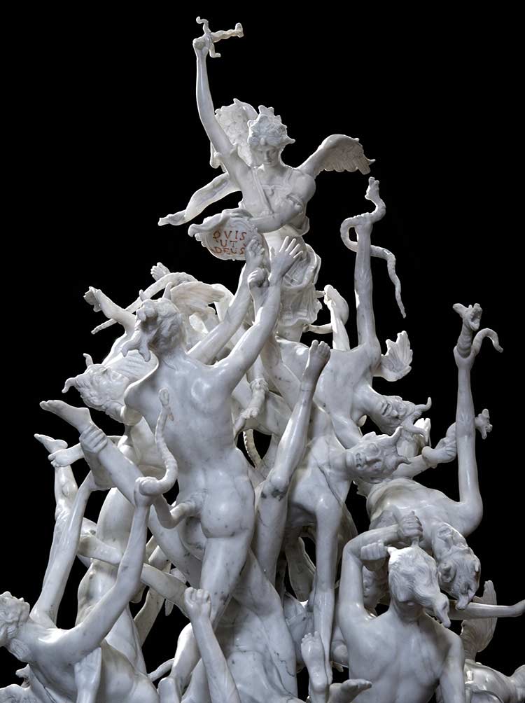 la caduta degli angeli ribelli è scultura alta quasi due metri ricavata da un unico blocco di marmo