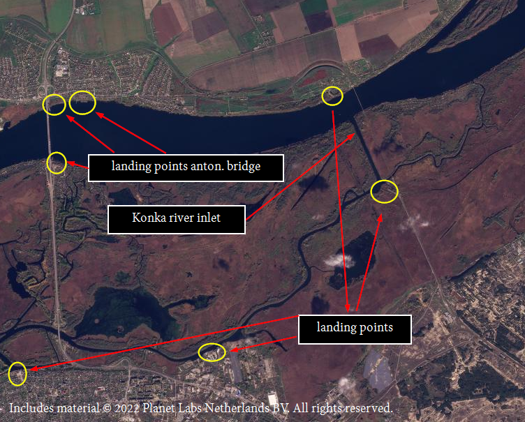 5/12 The ferry's from this point would cross the river into the Konka river and to any of the established unloading points as can be seen on the imagery. Some of those have been struck by HIMARS a couple of times, however it is impossible to control these point all of the time.