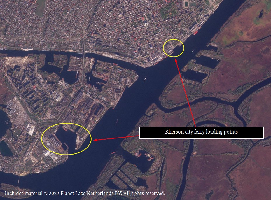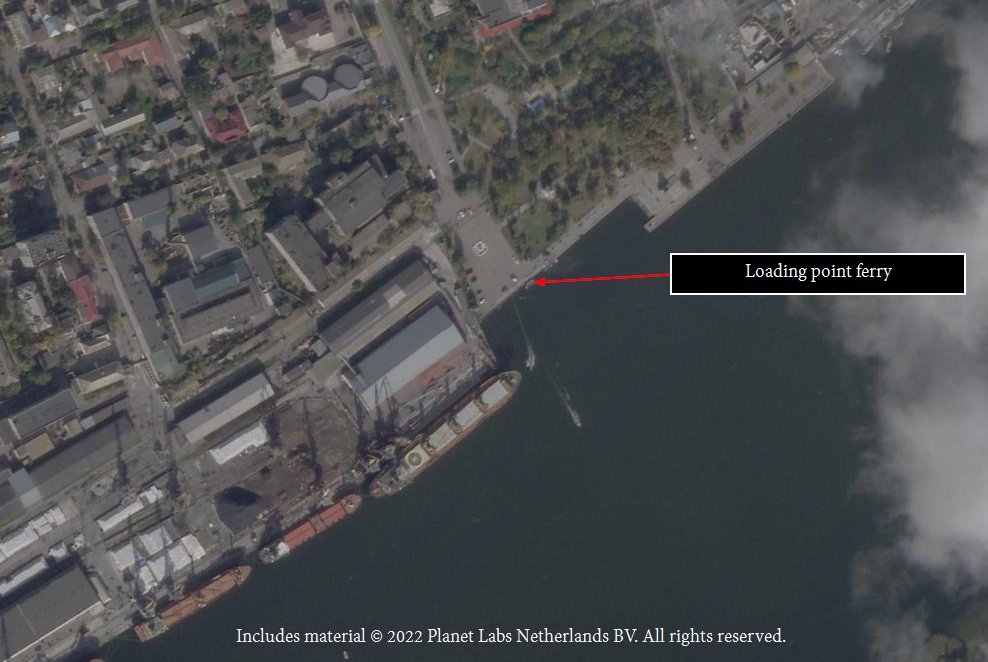 8/12 Another area where ferry's are loading, is inside Kherson city, we have established at least 2 loading points, one in the centre of the city, and the other in the harbour area.The ferry's loading here most likely go to Hola Prystan harbor across the river.
