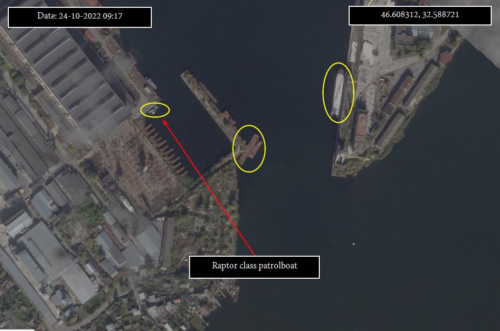 Supposedly on board, a contingent of a specialized unit with serveral Lancet-3 drones and a control vehicle.(un-confirmed). We managed to locate the site to [46.539600,32.520224]. As you can see in the animation ⬇️ 2 barges and a small warehouse were destroyed there.