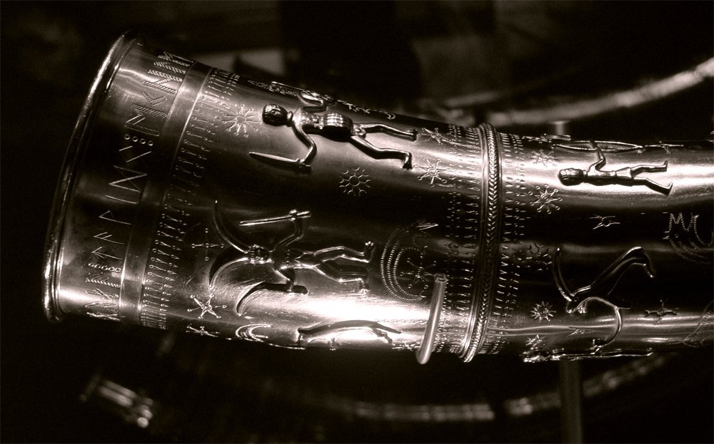 Los símbolos en el segmento superior del cuerno más largo se han tomado como un código cifrado para un hechizo rúnico: "Que la poción contenida en este cuerno ayude al clan". Lo que tenemos entonces son cuernos rituales con una referencia a algún tipo de poción mágica. Hay más.