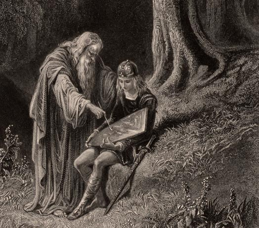 Merlín, o tal vez debería decir Myrddin (ese parece ser su nombre original), es el mago más arquetípico de todos los tiempos. Es de hecho el origen de todo ese simbolismo que se transmite en la literatura, desde él, hasta el propio Gandalf de J. R. R. Tolkien.