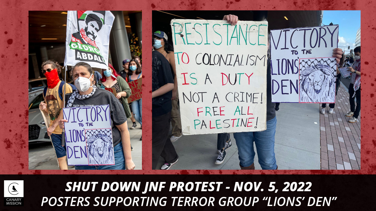 4/ Posters at the protest promoted the “Lions' Den,” a new, deadly Palestinian terrorist group. Additionally @MappingProj48 affirmed support of the dangerous terror group in an extended twitter thread. jpost.com/bds-threat/art…