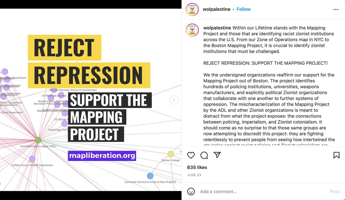 5/ The mapping of Jewish individuals & institutions predates @BDSBoston 's Mapping Project. This BDS intimidation technique emerged in April 2021 from the violent anti-Israel, pro-BDS @WOLPalestine.