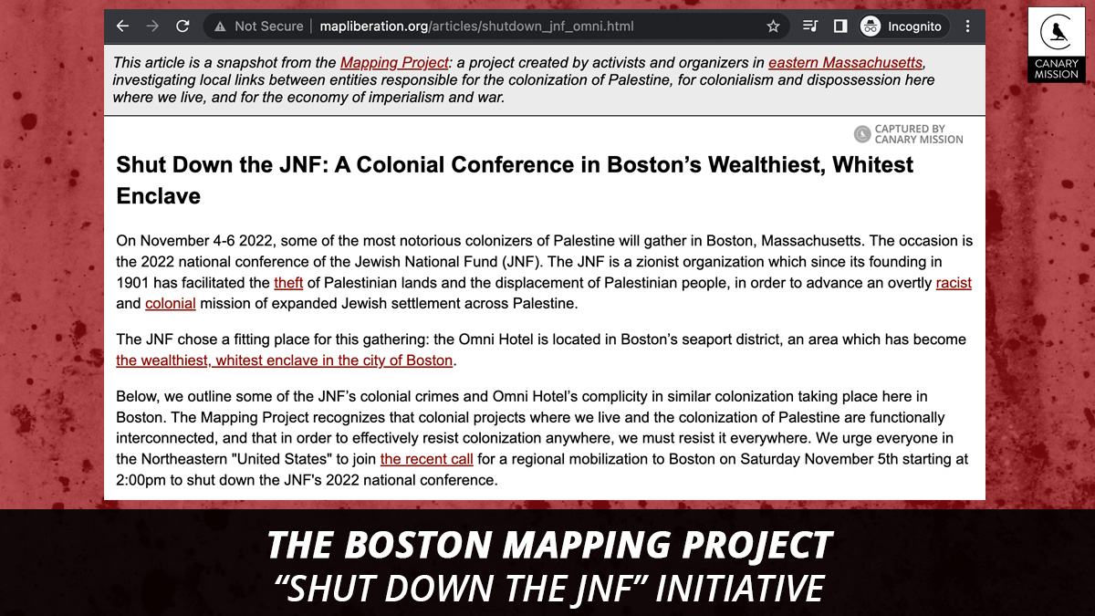3/ Now violent calls for an intifada – a violent uprising – and overt support for terror confirm that assessment. Under the hashtag #ShutdownJNF, the Mapping Project brought together a host of radical anti-Israel groups in the Boston area to protest JNF.