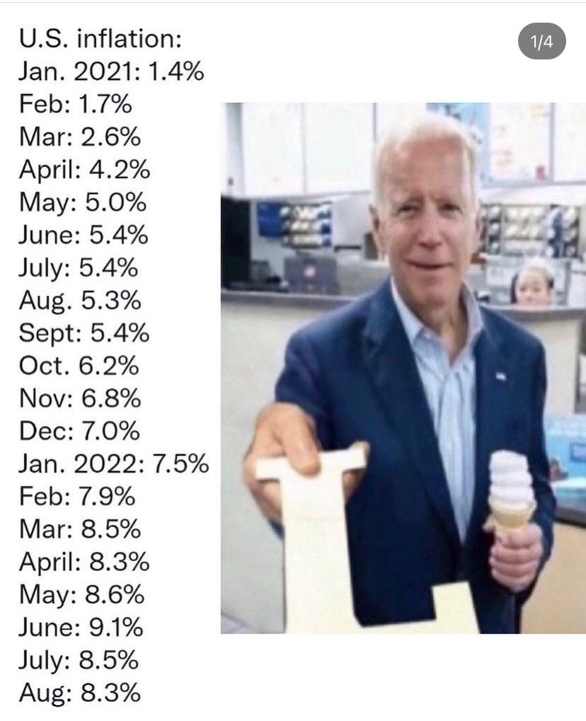First and foremost is the obvious: everything is really fucking expensive. Inflation was 1.4% when Biden took office. Today it is 8.2% and at one point, it was at 9.1%. Grocery prices are up 13%. The average American has lost $6K of annual wages and the average 401K is down $34K.