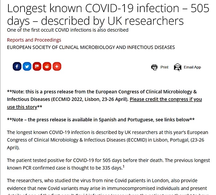 505 days is the longest SARS CoV-2 Persistent Infection confirmed to date in #LongCOVID