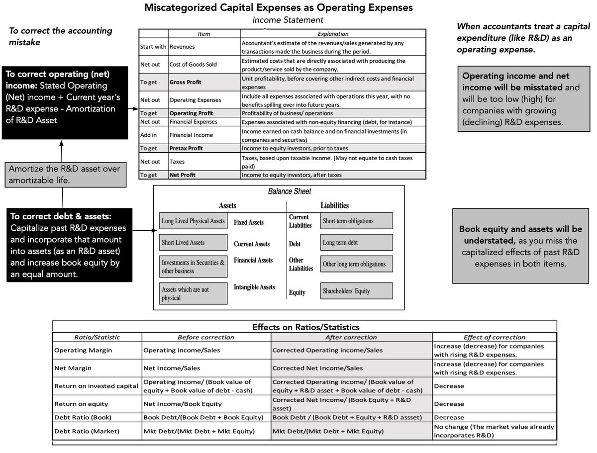 Correcting for accounting mis-categorizations of operating and capital expense is not nit-picking. It has consequences for both valuation and pricing, altering your perspective on companies and changing your valuation & pricing judgments. bit.ly/3UJCiaX