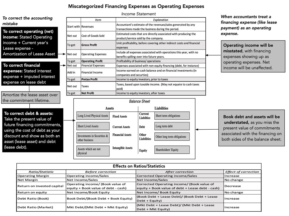 When a financing expense (like leases) is mis-categorized as an operating expense, standard accounting practice until 2019, operating income and debt at firms will be understated, affecting operating margins & ROIC. bit.ly/3UJCiaX