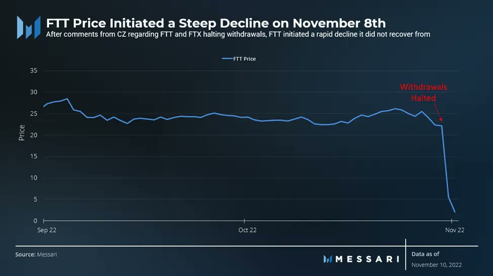 On November 6, @binance CEO @cz_binance announced that his exchange would liquidate $2.1B worth of $FTT, initiating $FTTs decline.