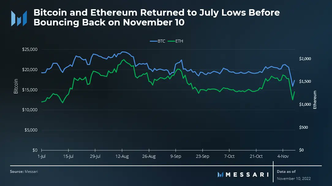 1/ With #ETH and #BTC retracing following a 20% decline in light of the @FTX_Official news, let's attempt to find some hopium from the last two weeks. 🧵