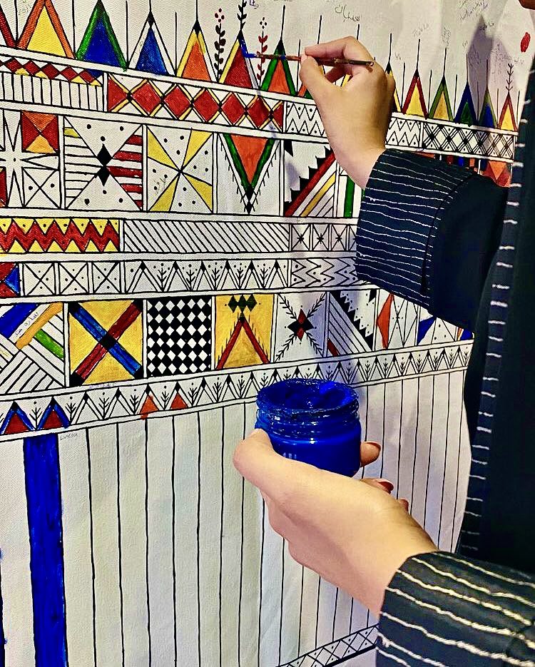 Al-Qatt Al-Asiri is an ancient and female art form in Saudi Arabia, considered a key element of the Asir region’s identity. It is traditionally a colourful form of interior wall decoration, practiced by women.