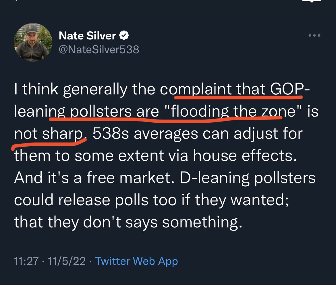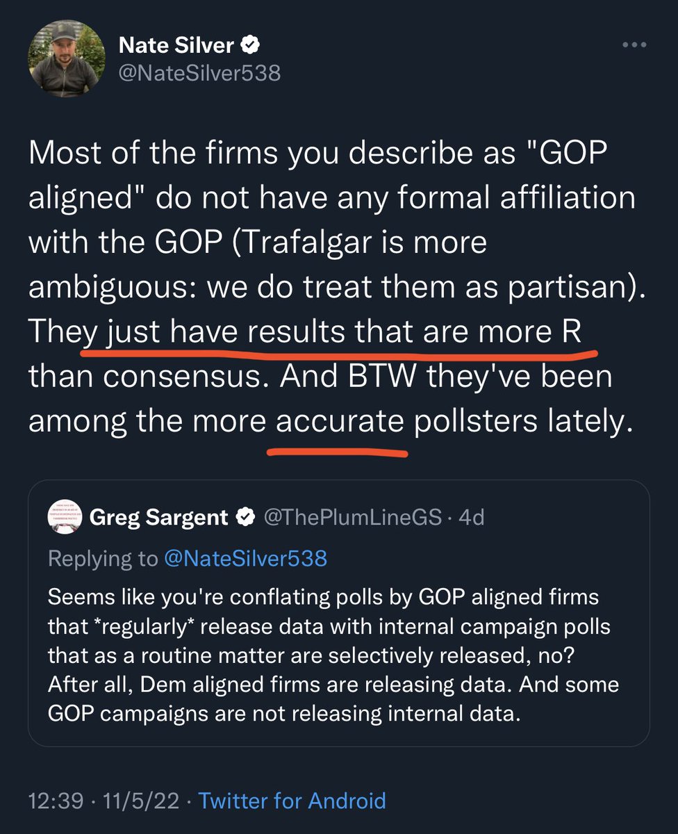 CAN’T MAKE THIS STUFF UP— this guy 👇 was seriously bending backward to defend GOP-leaning polls (that predicted a red wave / tsunami) just days ago. He even called GOP-affiliated polls as “among the more accurate pollsters lately”.