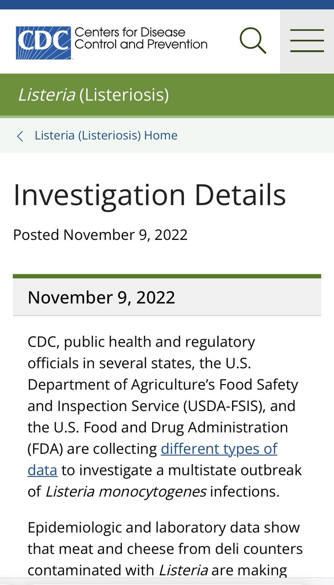 📍Listeria outbreak—CDC announced 16 confirmed listeria cases have been reported by 6 states. Of which, 13 hospitalized, and 1 woman got sick during their pregnancy, resulting in pregnancy loss. Possibly via contaminated deli meat & cheeses. Same strain. cdc.gov/listeria/outbr…