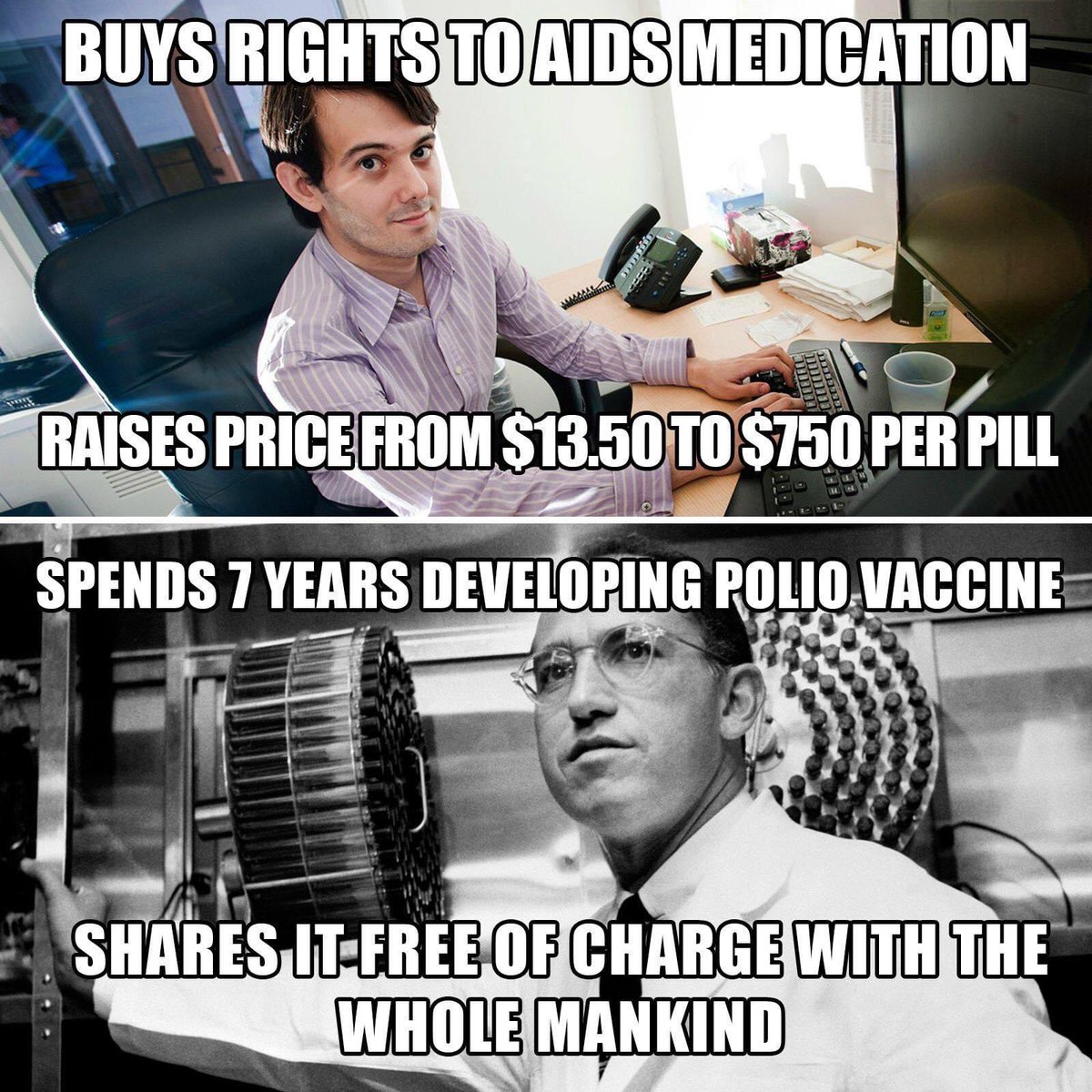 12) In the world of drugs, do NOT be a Martin Shkreli or Eli Lilly… ➡️be a Jonas Salk (polio shot inventor) and Frederick Banting (insulin inventor).