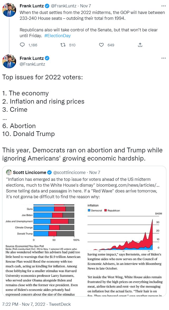 These are the same experts who also got 2016, 2018, and 2020 wrong. They knew many of the recent 2022 polls were junk and cited them anyway. And if they claim they did know the polls were junk, then we have a bigger problem because it was clear the polls were junk...