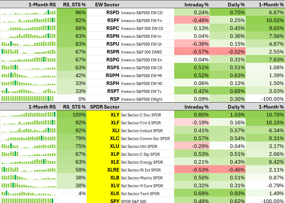 @dryan310 Strongest Cap Weighted Sector vs Equal Weight Sector
