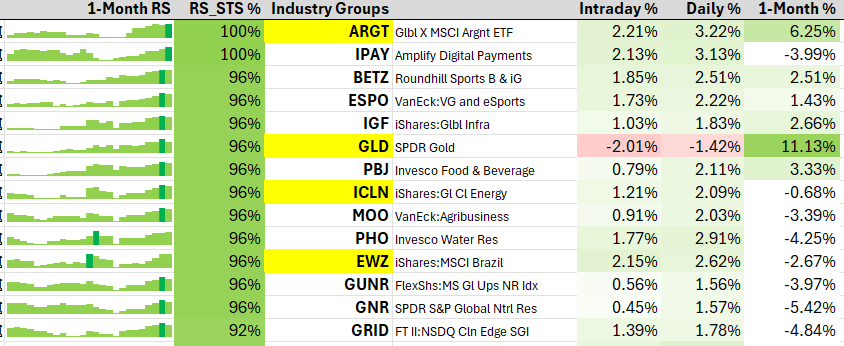 3. Top 15 Industry Group (1-Month RS% Sorted), Equal Weight vs Cap Weight