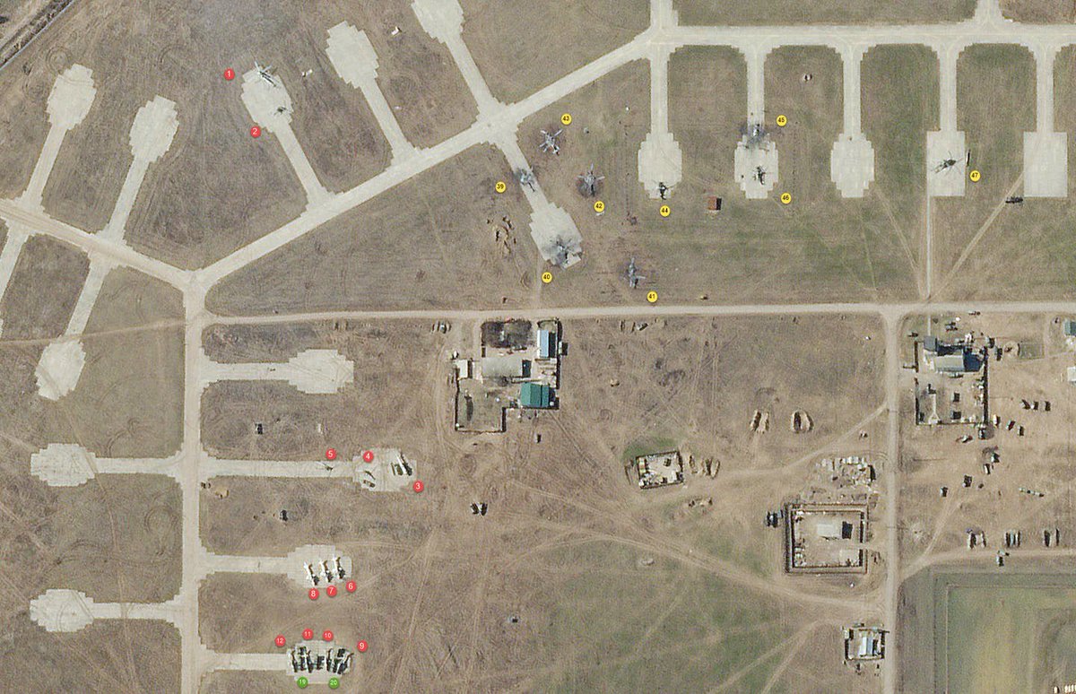 1/It’s long overdue, but here we go – russian aircraft losses in Chernobaivka c. 12-16 of March. Unfortunately I didn't document the sources of all the images, since I didn't plan on publishing this analysis and catalogued it for myself.