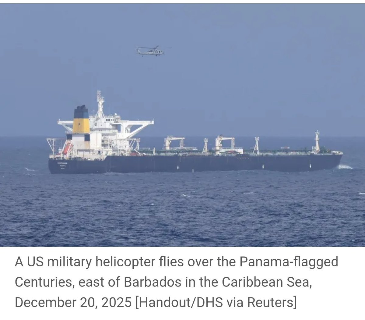 La incautación del súper tanquero VLCC Centuries de "bandera Panameña" con 1.8 millones de barriles de crudo, ocurrió en aguas internacionales al este de Barbados, el buque había cargado Merey en Jose usando identificación falsa (Crag).