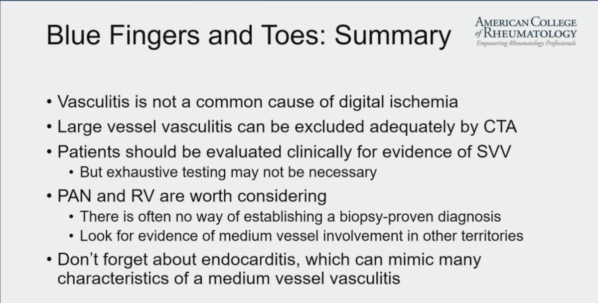RA and PAN are important consideration for digital ischemia with Medium vessel vasculitis