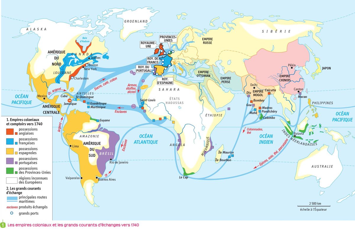 Depuis le XVe siècle, les pays occidentaux se sont engagés dans l'exploration du monde et ont conquis une grande partie de ce dernier. Le Portugal et l'Espagne, puis la France, l'Angleterre et les Provinces-Unies sont les grandes puissances coloniales de l'époque moderne. 6/25