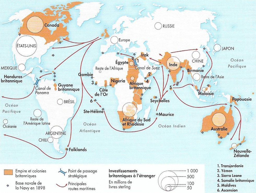 En outre, c'est au XIXe siècle que l'impérialisme britannique atteint son apogée : l'Angleterre peut désormais bénéficier de millions d'hectares de terres à exploiter pour sa consommation en vivres et en matières premières. 11/25